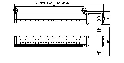 該巷道燈為固定使用型,采用隔爆兼本質(zhì)安全結(jié)構(gòu)。由接線電源隔爆腔和LED光源腔組成。接線電源隔爆腔內(nèi)的本安電路,將通過引入裝置的127V交流電,變換為穩(wěn)壓、恒流、經(jīng)安全柵雙重保護(hù)的本安電源供LED光源使用。LED光源腔,由高亮度LED發(fā)光二極管、鰓形散熱外殼體、下殼體、防靜電透明燈罩、端蓋等構(gòu)成。